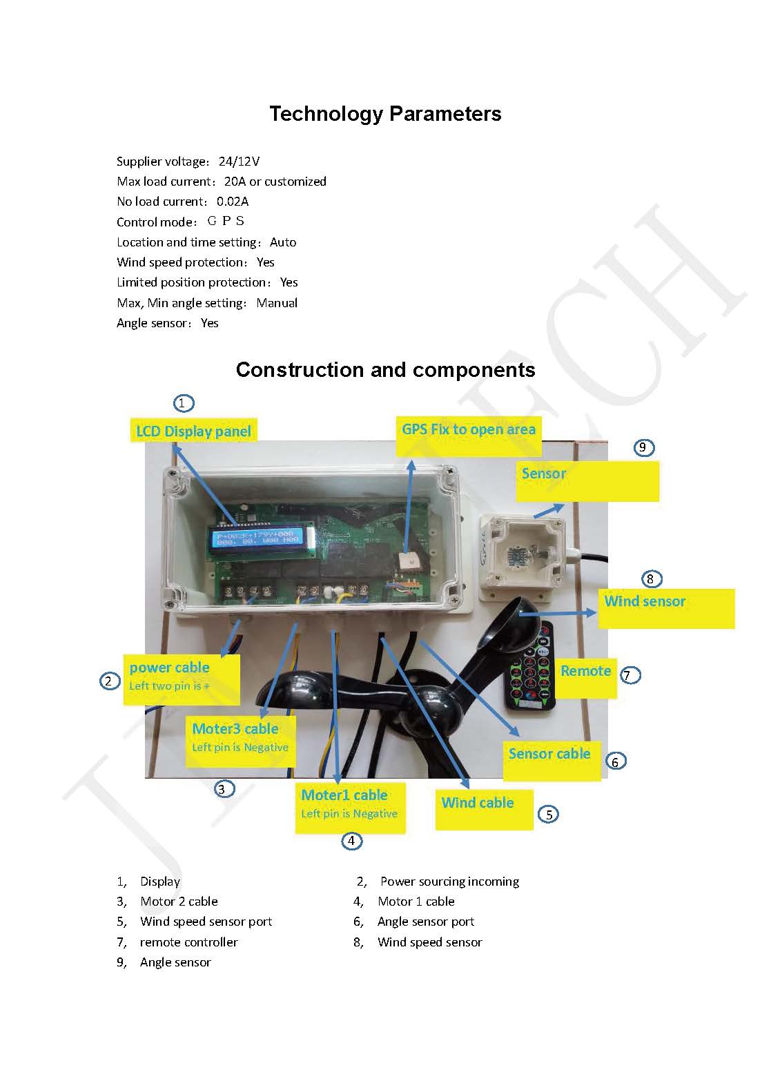 This tracker is GPSST-S2 single axis tracking controller, suitable for the single axis solar tracker construction with two motor, and use of medium and large photovoltaic power plant projects. It can be used to design a more wind-resistant structure.
