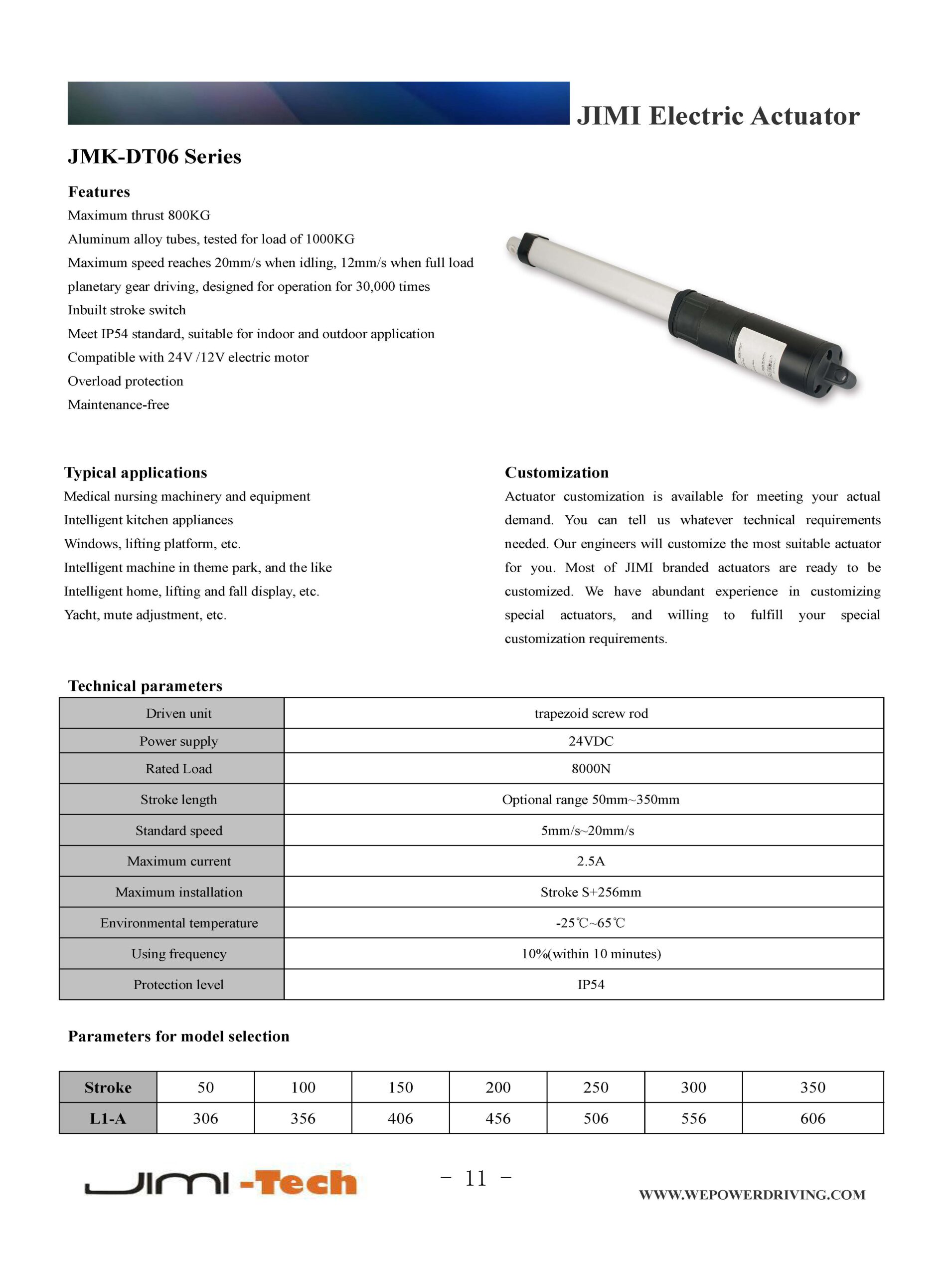 Customization of linear actuators is just for your requirements,whatever you have any requirements. Our engineers will try our best to design the most suitable products for you. JIMI Tech brands linear actuators can be customized to apply to wide field. We are professional and we are very pleasure to provide best service to our customers. Because we have 20 more professional engineers to solve different problems from our customers, we make so much customization for big companies around the world.